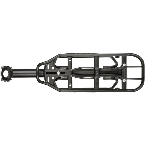 Der RFR Sattelstützengepäckträger mit Zusatz-Rails für Gepäck-Taschen ist ideal um auch das sportlichste Rad tourentauglich zu machen. Der Gepäckträger benötigt kein aufwendiges Gestänge, Ösen am Hinterbau oder ähnliches und lässt sich sogar am Fully unabhängig von der Radgröße problemlos nutzten. Einfach an der Sattelstütze befestigt trägt der Klick&Go-Gepäckträger bis zum 10 kg Last – Ideal gerade um sperriges Equipment wie Zelt und Schlafsack sicher zu vertäuen und schon geht es los auf Tour. Die Klemmschelle ist kompatibel mit allen gängigen Sattelstützen-Durchmessern von 27,2 mm bis 31,6 mm. Bitte bei der Nutzung von Leichtbau-Sattelstützen, beispielsweise aus Carbon, unbedingt die Angaben des Sattelstützenherstellers beachten.